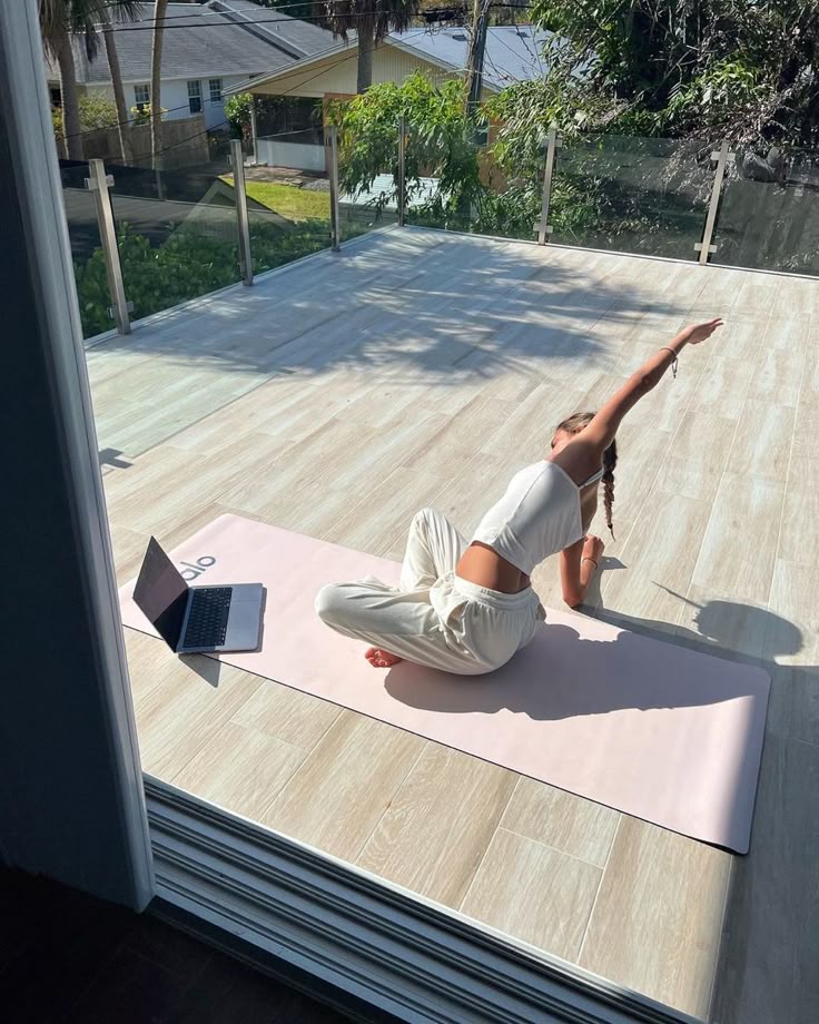 Just a bit of floor space, comfy clothes, and optional tools like a yoga mat, resistance band, or blocks (not required!).